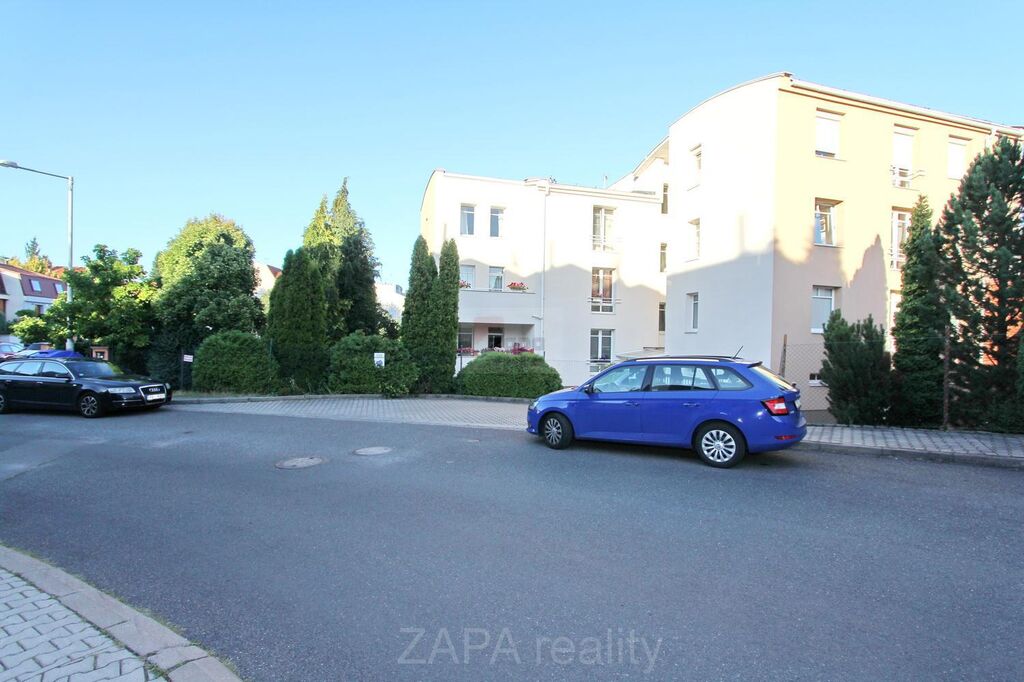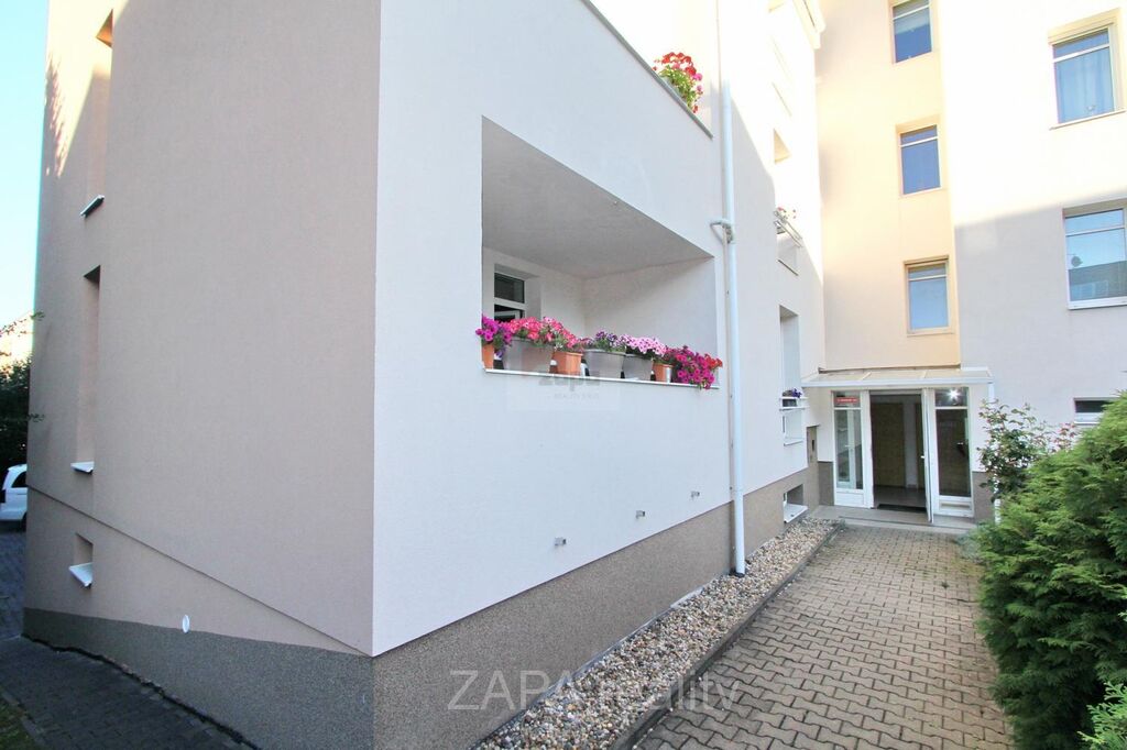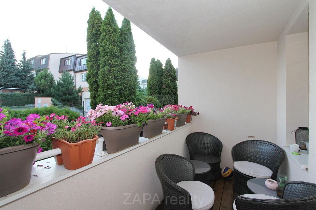 Obývací pokoj s lodžií a jedna ložnice jsou orientovány na západ, do klidné ulice.