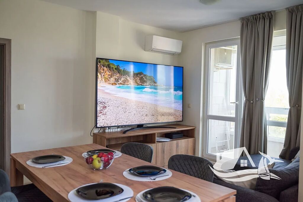 Apartmán se nachází ve 2. patře nového rezidenčního komplexu v přímořském městě Byala, pouhých 500 metrů od písečné pláže a jen pár minut chůze od centra města. Celková plocha činí 84,91 m², k dispozici je také terasa o velikosti 15,6 m², ideální pro snídani s výhledem do zeleně nebo večerní odpočinek s rodinou či přáteli.