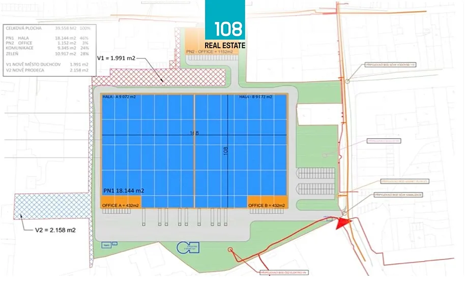 Je vydáno platné územní rozhodnutí pro výstavbu průmyslové haly. Jedná se o jednu budovu se zastavěnou plochou 18 144 m².