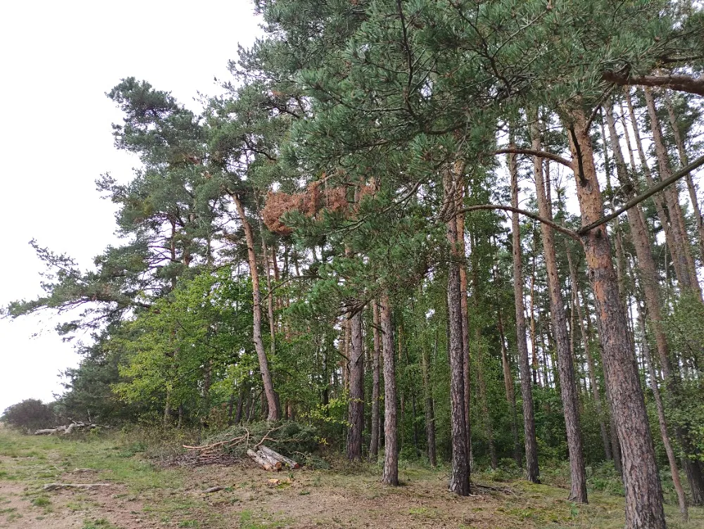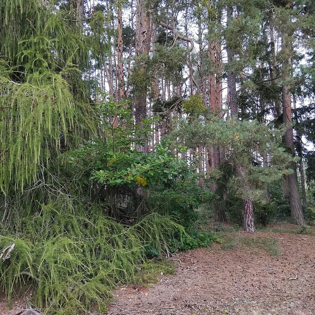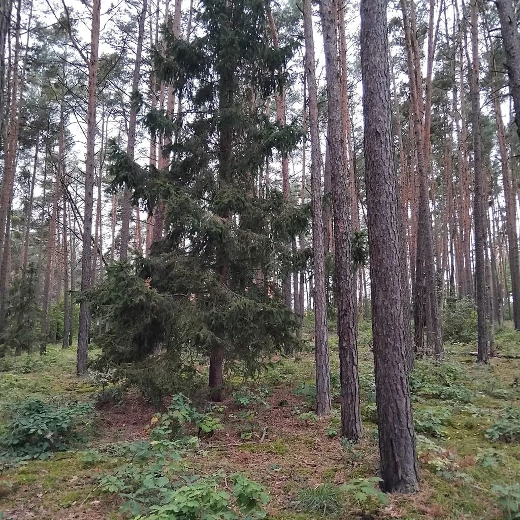 V "pohodlném" vzrostlém lese, vysazeném v roce 1940, se ukazuje i mech, rostou houby, borůvky, na kraji na jednom stromě je i jmelí, je vidět dostatečná vlhkost, nikde ale není přemokřeno. Ten les je prostě krásný a osvěžující, cítíte se v něm dobře.