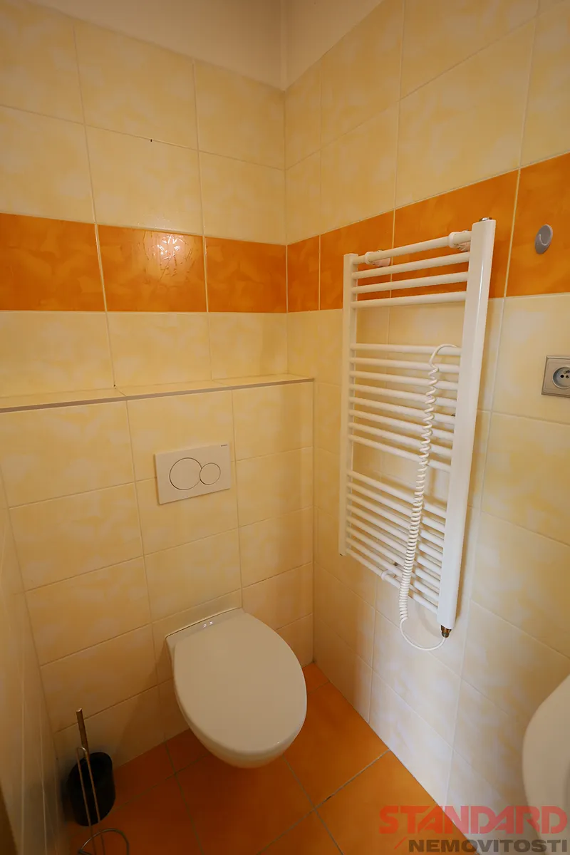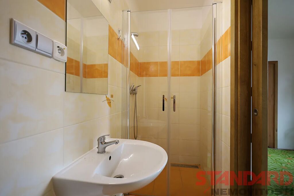 Byt má samostatný vstup z chodby rodinného domu, má svoji vlastní, nově zrekonstruovanou koupelnou se sprchovým koutem a toaletou. Je vybaven kuchyňskou linkou, lednicí, varnou deskou a pračkou. Dále je zde k dispozici gauč, postel, 3 židle, stůl, úložná skříň, komoda a televize. Po dohodě je možné použít vlastní nábytek.