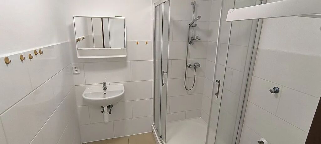 Plastová okna, zateplená fasáda, zděné bytové jádro se sprchovým koutem.