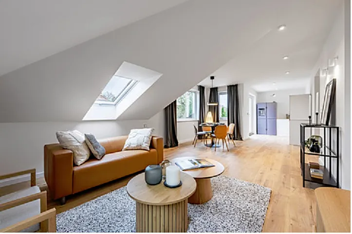 Standardem této jedinečné novostavby jsou dřevěné podlahy, podlahové vytápění, velkoformátové obklady, moderní trojskla a čistý design.