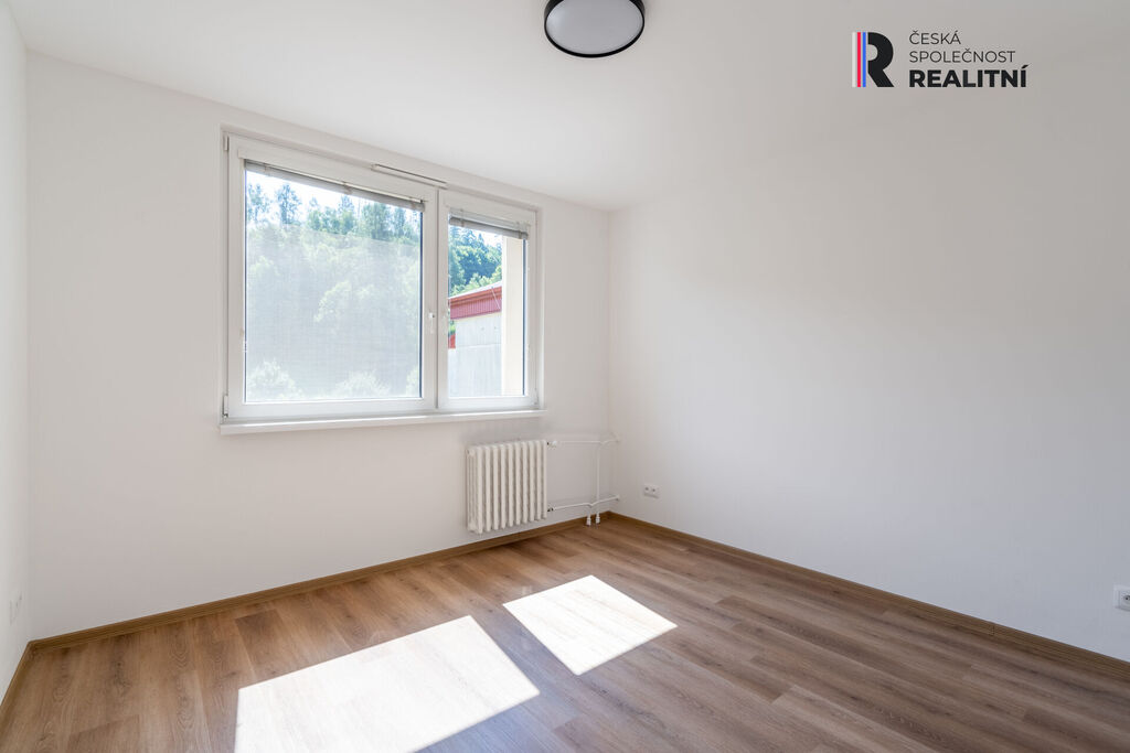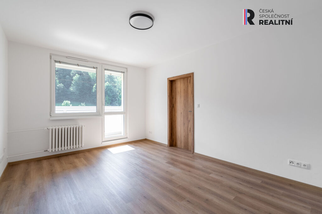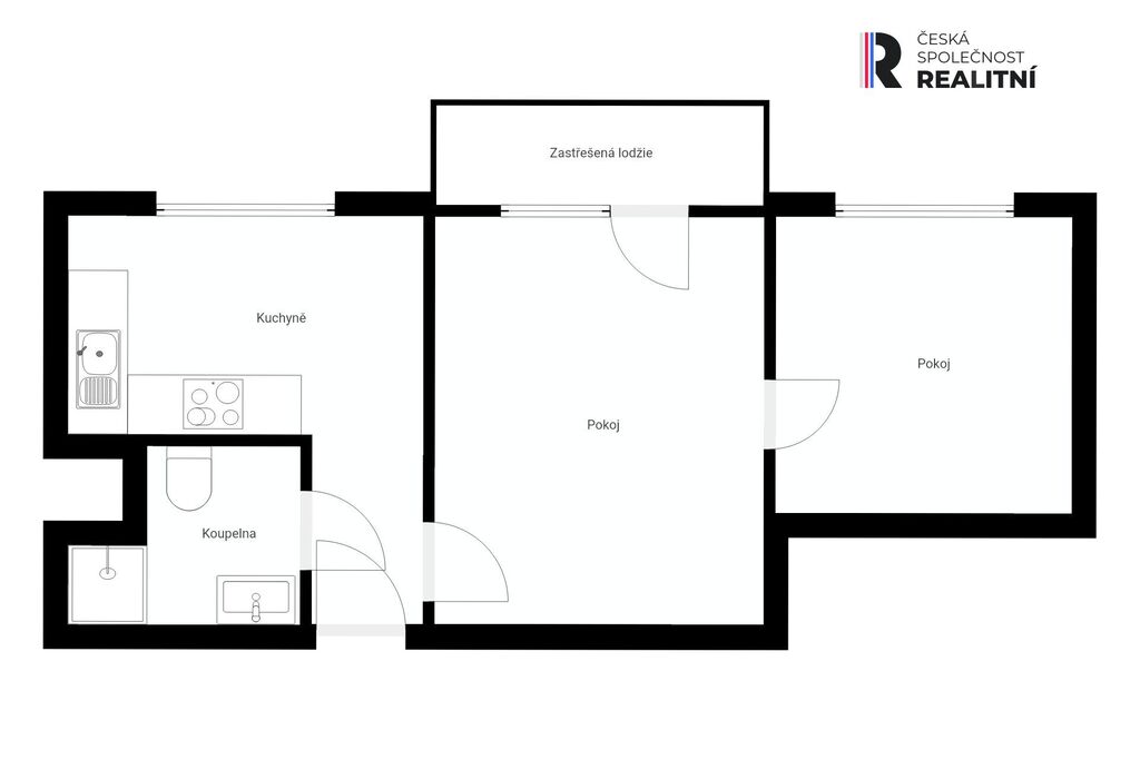 Dispozice bytu: vstupní chodba, kuchyň s jídelním koutem, průchozí obývací pokoj, ložnice, koupelna s WC, zasklená lodžie. Sklepní kóje.