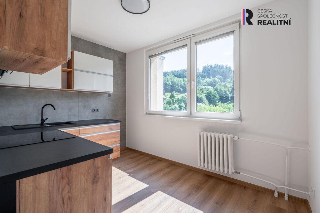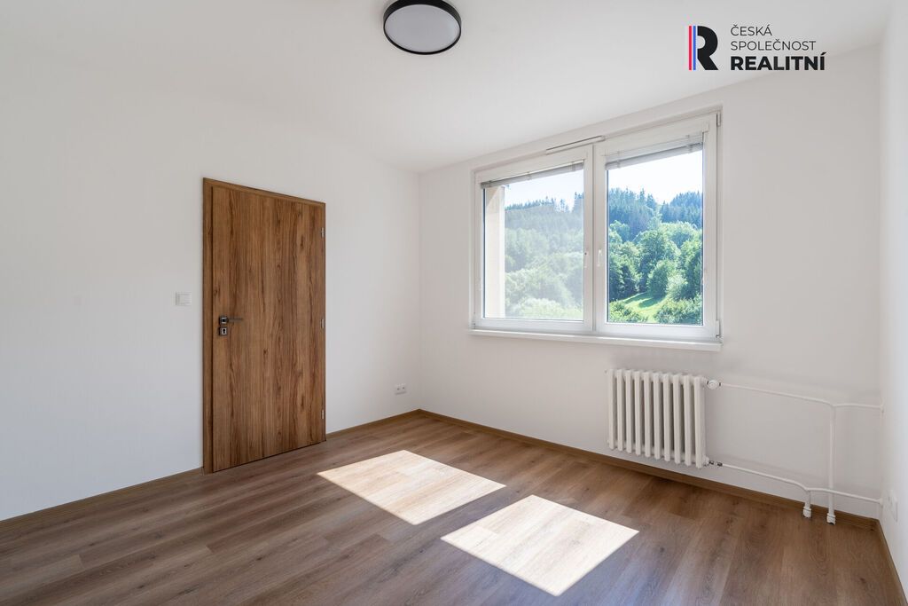 Bytová jednotka o podlahové ploše 43,2 m2 s lodžií 4,3 m2 se nachází v 8.NP panelového domu, ul. Dolní Jasenka, Vsetín. Bytový dům prošel revitalizací - nová střecha, fasáda, okna se žaluziemi, lodžie, výtah.