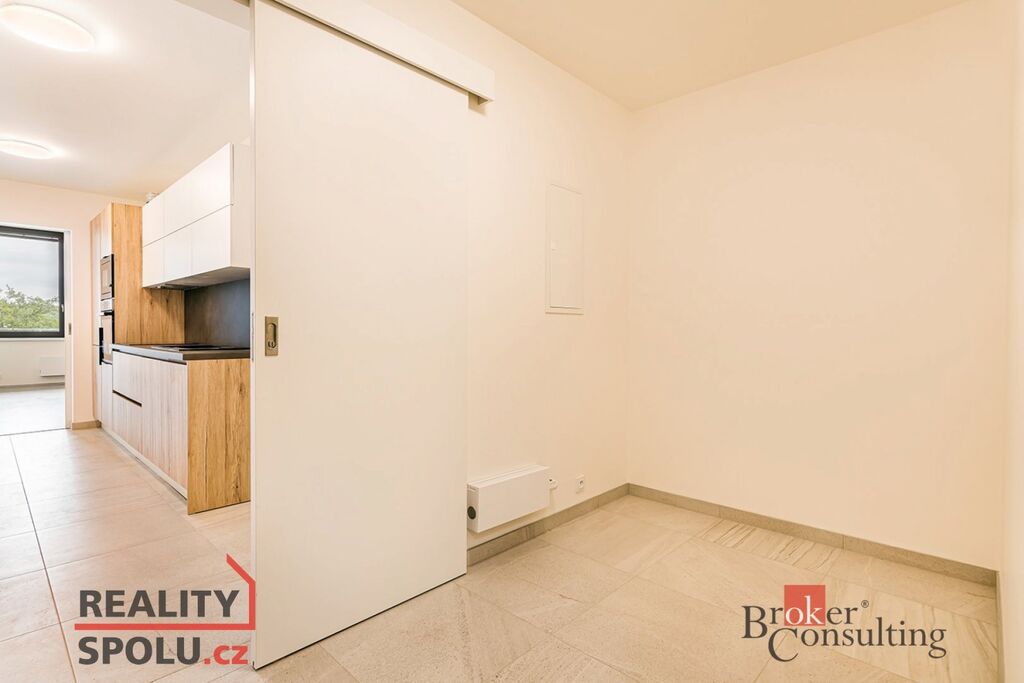 Vybavení bytu: Kuchyňský kout (10 m2) je zařízen nadstandardní kuchyňskou linkou s vestavěnými spotřebiči (trouba, mikrovlna trouba, indukce, digestoř). Koupelna (4,80 m2) disponuje sprchovým koutem, umyvadlem, topným žebříkem a WC. Jsou zde nachystané přípojky pro zapojení pračky. Obývací část bytu s prostorem pro spaní (32,45 m2) není zařízena. Nájemník si byt může zařídit dle vlastních představ. V bytě se nachází i prostorná předsíň, která může sloužit jako šatna či prostor pro odkládání věcí.
