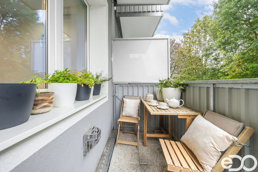 Součástí je také balkón a dva sklepy – jeden menší (2m2) a jeden větší (6m2).