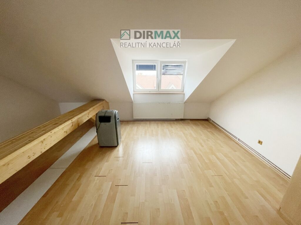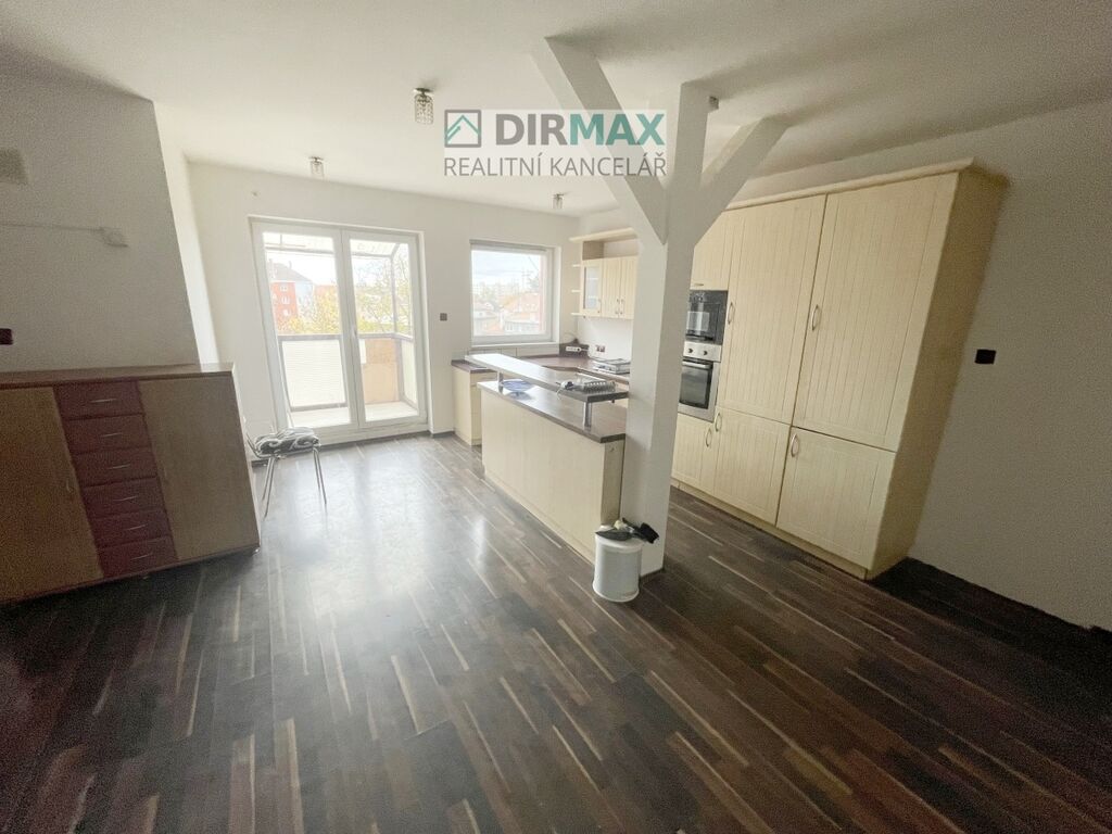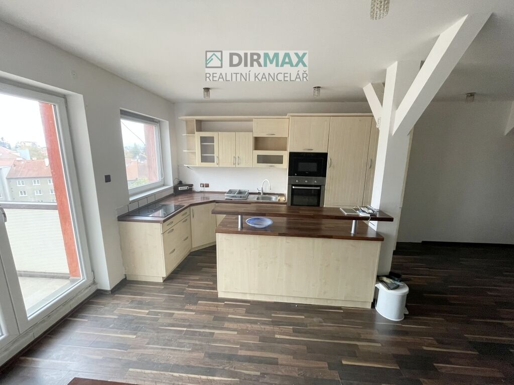 V kuchyni je kuchyňská linka se spotřebičů je tady sklokeramická deska, horkovzdušná trouba, lednička s mrazákem a mikrovln. trouba. Součástí kuchyně a kuchyňské linky je barový pult. Z kuchyně se vstupuje na balkonovou, krytou terasu s pěkným výhledem. Je tady absolutní soukromí. Ve spodní části bytu je jeden velký pokoj a dva pokoje jsou po schodišti do patra. Jedná se o malé pokoje, ale účelně dispozičně členěny. Na podlaze jsou OSB desky bez krytiny (tak jak je na foto, koberec není!), ideální pro nájemce, který si umístí vlastní koberec nebo krytinu atd. Je nově vymalováno.