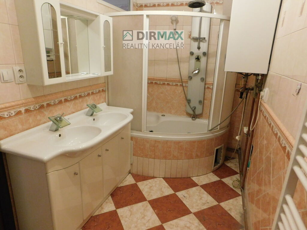 Velkou výhodou je, že koupelna i toaleta je samostatně. V koupelně je sprchový kout a vana, je tady i topný žebřík, na podlaze dlažba. Na toaletě je vlastní umyvadlo. Jádro bytu je zděné. Podlahy jsou v bytě plovoucí. Voda i topení je přes kombi kotel. V obývací části pokoje jsou elektrická dekorativní, krbová kamna.