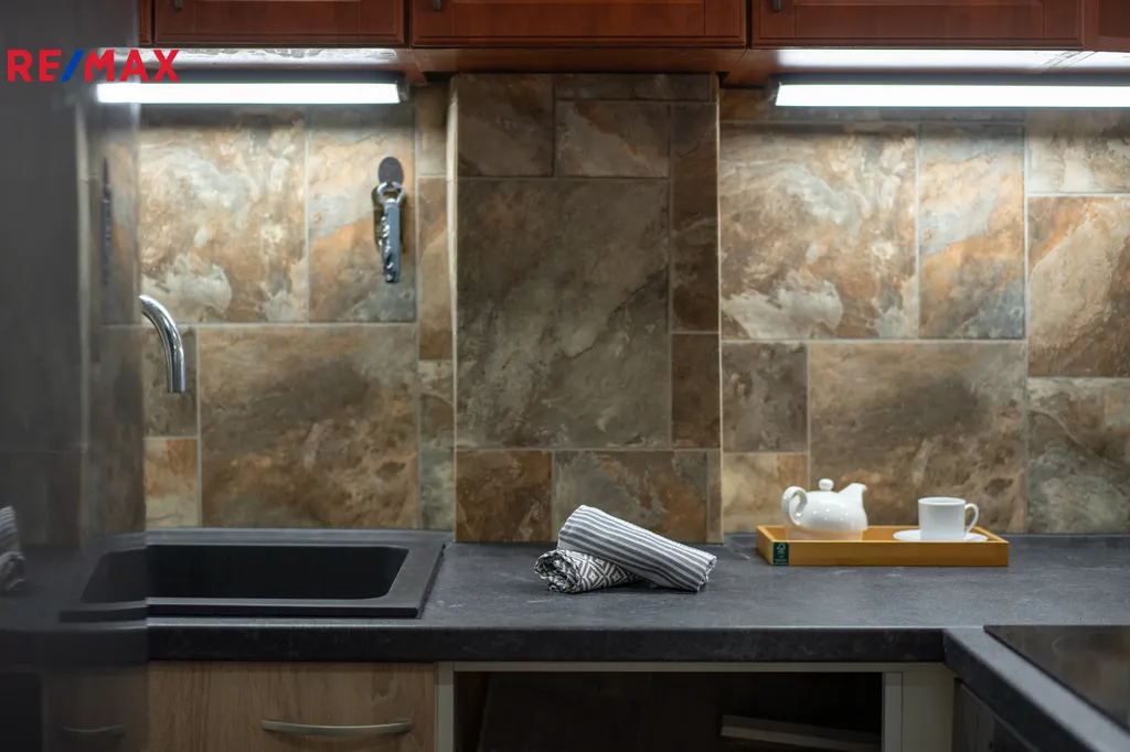 ✅ Kuchyňská linka s pultem do L, vybavená vestavnými spotřebiči: varná deska, el. multifunkční trouba. / bez lednice/