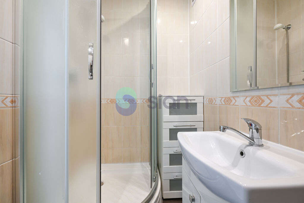 Kuchyně vybavená kuchyňskou linkou s elektrickou troubou, varnou deskou, digestoří a připravenou přípojkou na pračku. V chodbě se nachází šatní skříň a věšák na oblečení, v ložnici je k dispozici vestavěná šatní skříň. Koupelna je vybavena sprchovým koutem, umyvadlem se skříňkou a úložnou komodou.
