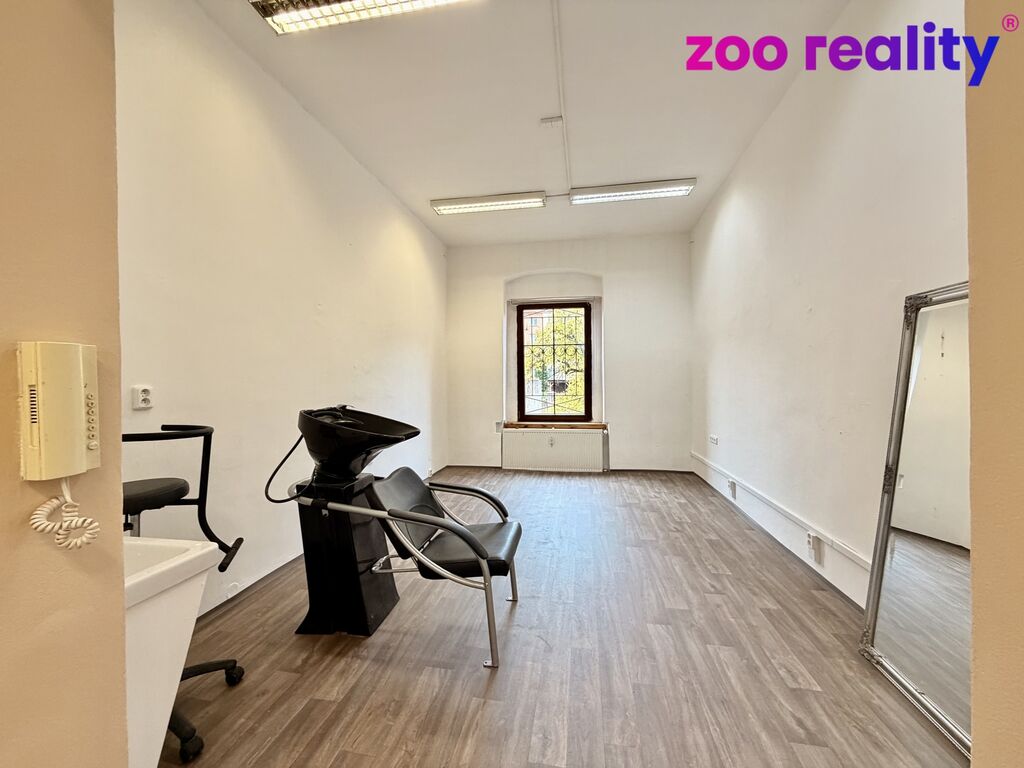 Nabízíme k pronájmu nebytový prostor, nacházející se v 1. nadzemním podlaží cihlového domu, na frekventované ulici města, se dvěma okny do ulice. Jedná se o spojené 2 místnosti, dříve užívané jako kadeřnictví, s kadeřnickým křeslem, umyvadlem i vstupní recepcí. Toaleta oddělená. Po domluvě možno užívat zahradní sezení za domem. Placená parkovací místa u domu. Čisté nájemné činí 4.000,- Kč měsíčně + spotřebované teplo a voda ve výši 2.000,- Kč, měřáky samozřejmostí. Ihned volný.