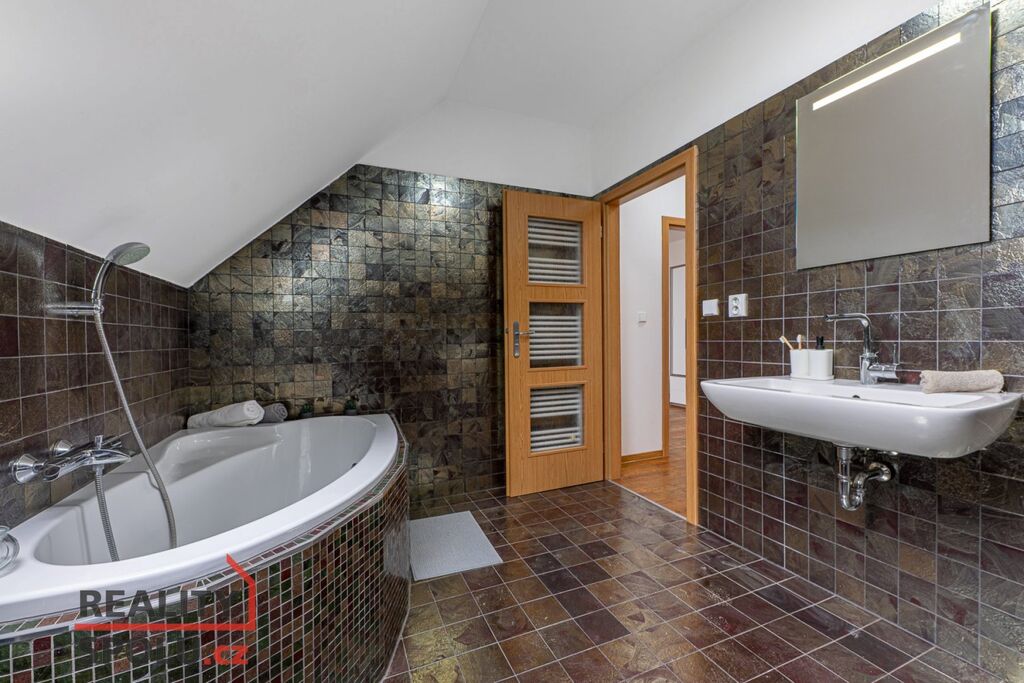 3. podlaží (ložnicové) nabízí tři samostatné a velmi prostorné pokoje, včetně hlavní ložnice o velikosti přes 21 m², a třetí, největší koupelnu vybavenou rohovou vanou, umyvadlem, WC a bidetem. Z oken této části je krásný výhled do okolní zeleně. Součástí domu je také velkorysý půdní prostor, který lze využít nejen jako úložné zázemí, ale nabízí i možnost budoucího rozšíření – například o ateliér, domácí pracovnu nebo další obytnou místnost.