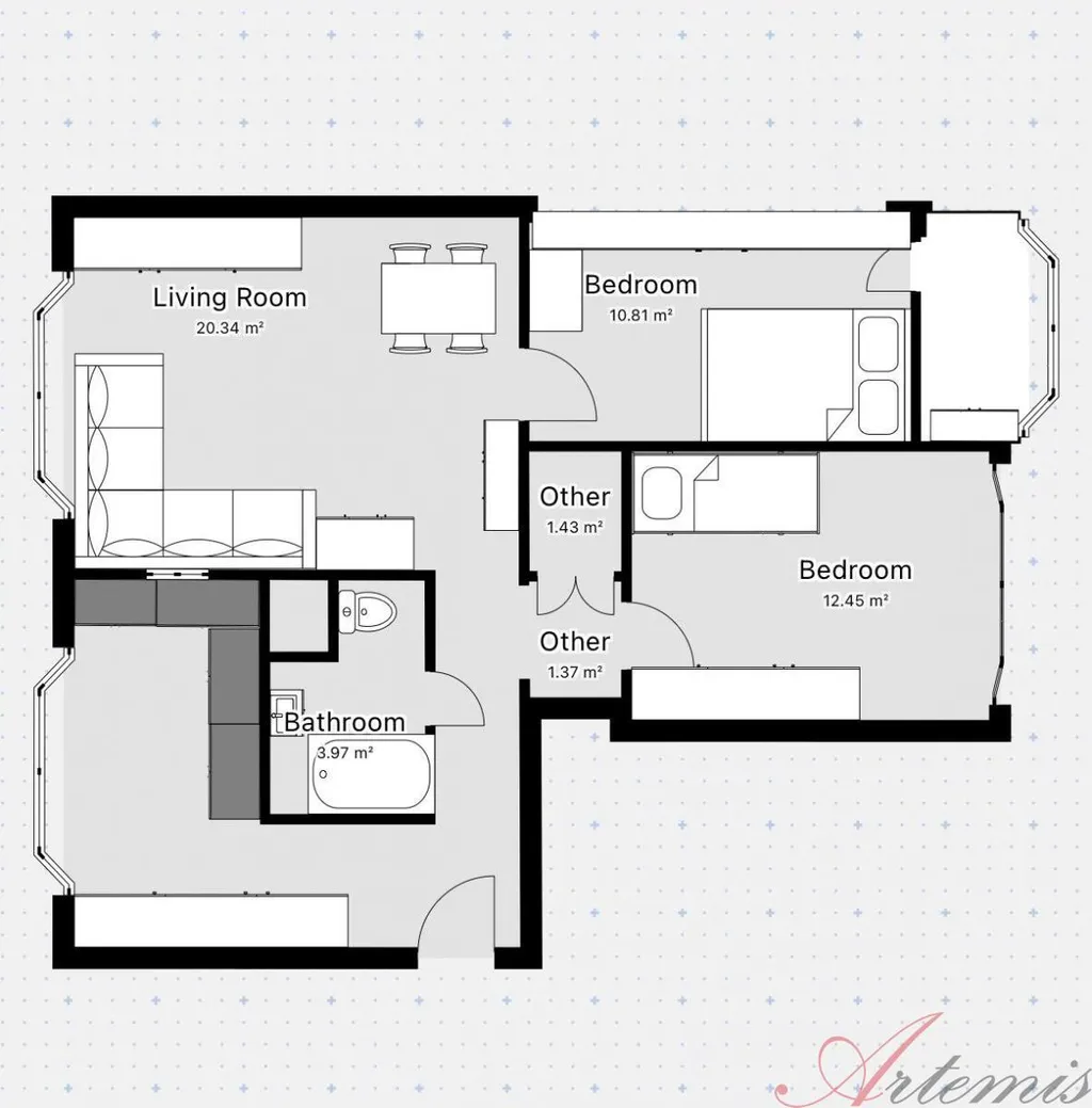Byt v pěkném stavu, koupelna s WC, jádro sadrokarton, ložnice se zasklenou lodžií. Elektřina v mědí, voda a odpad v pastu.