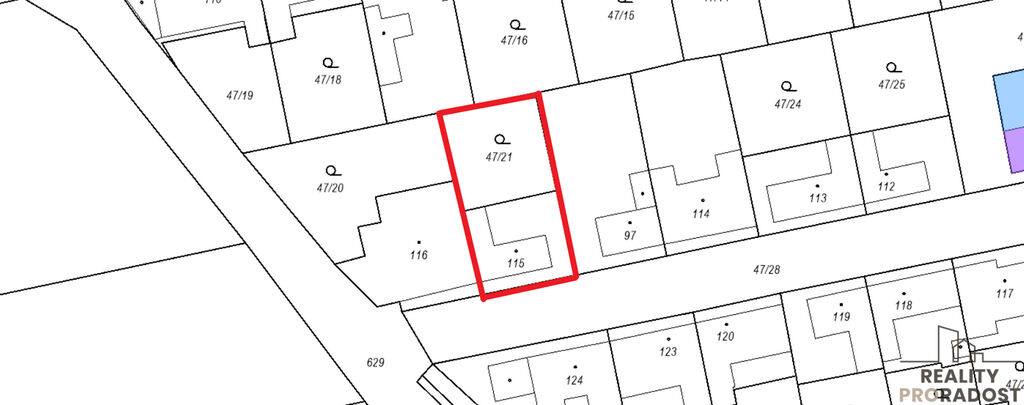 Zastavěná plocha činí 97m², celková rozloha parcely dosahuje 512m².
