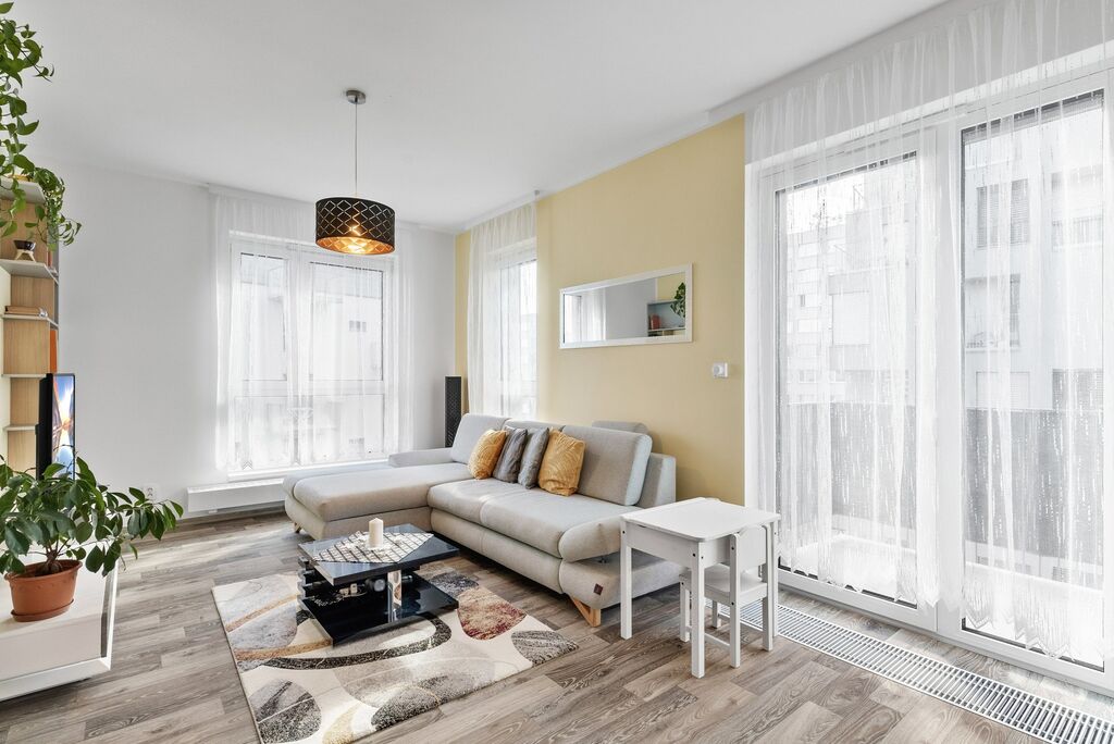 Nabízíme k pronájmu kompletně vybavený moderní byt 2+kk (59 m²) v novostavbě v ulici U Nisy, 7. patro s balkonem (4,3 m²).