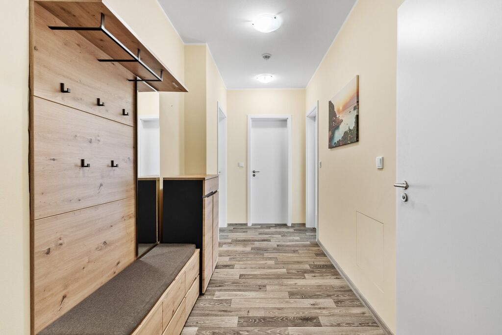 Součástí nájmu je kompletní vybavení bytu včetně elektrospotřebičů.