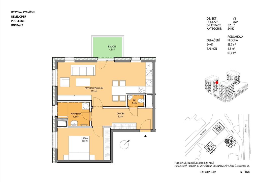 Pronájem bytu 2+kk s balkonem a parkovacím stáním – Liberec, ul. U Nisy