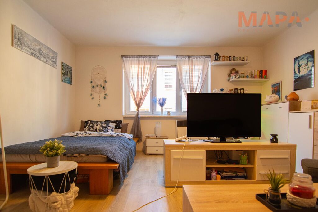Dispozice 2+1 nabízí prostorný obývací pokoj, útulnou ložnici, světlou kuchyň a koupelnu.
