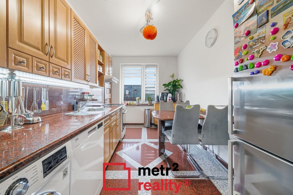 Hledáte výjimečný, kompletně zrekonstruovaný byt ve velmi klidné lokalitě, a přitom v blízkosti centra města v Uničově? Ve výhradním zastoupení majitelů si Vám dovolujeme nabídnout byt v cihlovém domě o čtyřech bytových jednotkách, který se nachází na konci slepé ulice. Byt je o dispozici 3+1, umístěný ve zvýšeném přízemí, s podlahovou plochou 74,5 m2. Byt disponuje prostornou vstupní chodbou, koupelnou s WC a rohovou vanou, obloženou italskou žulou, kuchyní se spižírnou, obývacím pokojem, ve kterém se nachází funkční zděný krb a dvěma pokoji o výměrách 11,31 m2 a 16,5 m2. V bytě se dále nachází šatna, ve které je umístěn plynový kotel, který zajišťuje vytápění bytu a ohřev teplé vody. K vytápění je možno využít již zmíněný krb umístěný v obývacím pokoji, revize komínu jsou samozřejmostí. Pokoje jsou vytápěny klasickými deskovými radiátory, v koupelně a v kuchyni je podlahové vytápění. Z obývacího pokoje je vstup na balkon o výměře 3 m2. Italská žula je v bytě použita i v kuchyni na pracovní desce a podlaze, žulové jsou i vnitřní okenní parapety. Byt prošel kompletní rekonstrukcí, jsou zde nové podlahy, interiérové dveře, včetně obložkových zárubní, mezi kuchyní a chodbou jsou posuvné do pouzdra. Velkou výhodou jsou tři zděné sklepy, které jsou ve výlučném užívání bytové jednotky a jsou o výměrách 8,22 m2, 8,22 m2 a 5,75 m2. Dále je možnost užívat společné půdní prostory, kde stávající majitelka věsí prádlo. Majitel zde položil nové podlahy a jeden ze sklepů je vytápěný a může sloužit jako dílna. K dispozici je dále zastřešené parkovací stání ve dvoře za domem, plus další nezastřešené v rámci společného pozemku. Posledním bonusem je výlučné užívání části společného pozemku, kde mají stávající majitelé vyvýšené záhony na pěstování vlastní zeleniny a dále zastřešenou pergolu s posezením a zděným grilem. Majitelé jsou připraveni byt přenechat včetně většiny zařízení, které případný zájemce bude chtít v bytě ponechat. Bytový dům se nachází ve velmi žádané, klidné lokalitě města, v blízkosti centra, autobusového a vlakového nádraží, s veškerou občanskou vybaveností v bezprostřední blízkosti. Město Uničov je velmi dobře sjízdné do Olomouce, autem 25 minut, což byt činí zajímavým i pro klienty z Olomouce, kterým nevadí dojíždění a ocení kouzlo menšího města. Pokud se nechcete starat o rodinný dům, ale chcete využívat veškeré výhody bydlení v domě, pak je tento byt určený právě pro Vás.