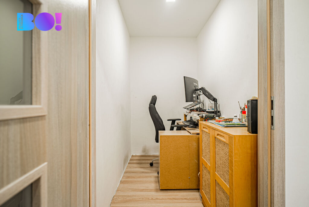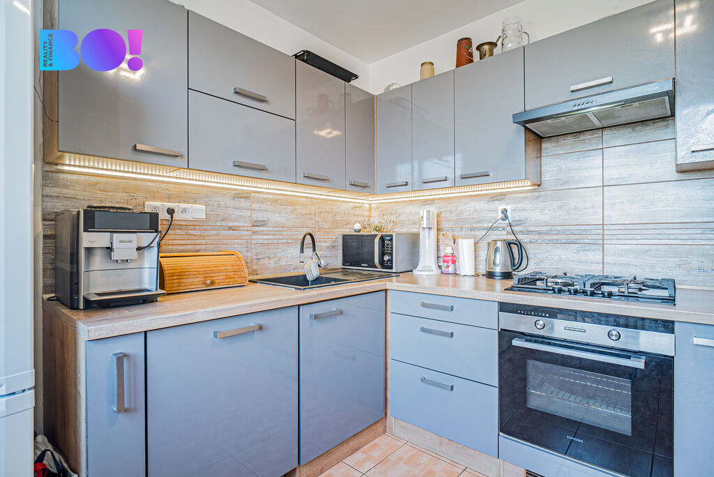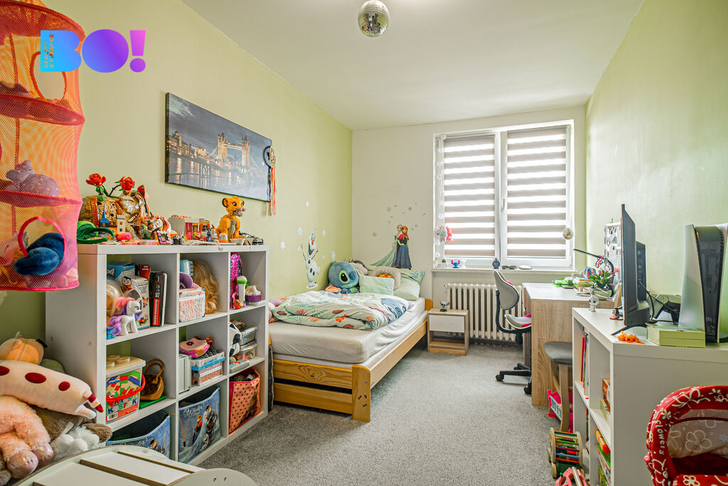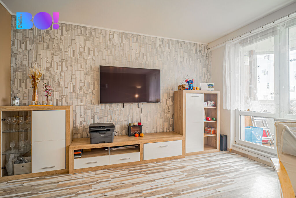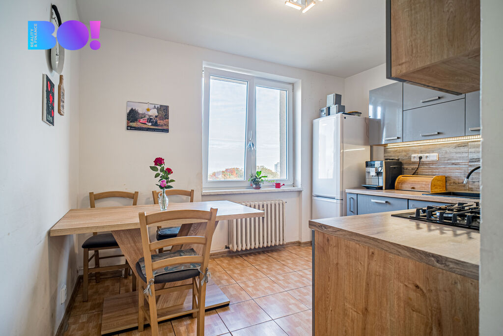 Jedná se o vkusně zrekonstruovaný byt, který se nachází v posledním, osmém podlaží panelového domu s výtahem. Dispozice bytu zahrnuje zděná koupelna se sprchovým koutem a samostatnou toaletou. Dále prostorný a slunný obývací pokoj se vstupem do prostorné zasklené lodžie. Tři samostatné pokoje vhodné jak pro dětské zázemí, pracovnu či ložnici. Součástí kuchyně je zánovní kuchyňská linka se spotřebiči, myčkou, elektrickou troubou a digestoří. Samotná užitná plocha bytu má krásných 84 m².