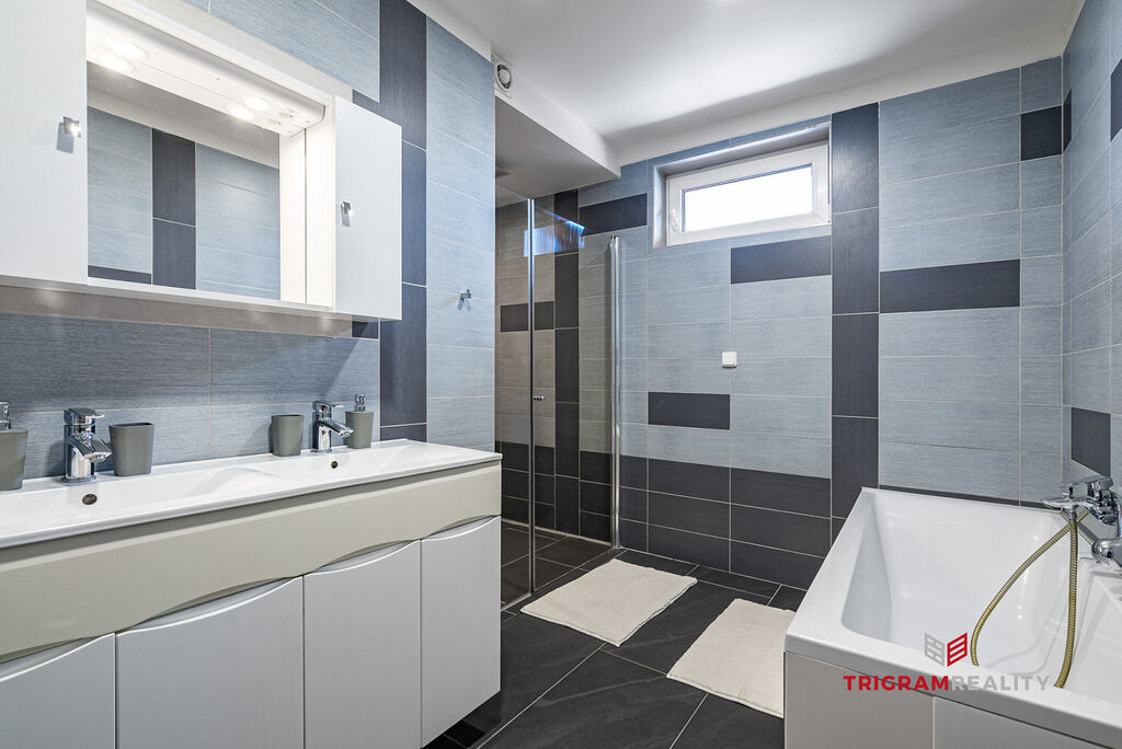 K maximálnímu komfortu nájemcům přispěje i dvougaráž, která se svou rozlohou cca 46 m² nabízí dostatek úložného prostoru i na zahradní náčiní.