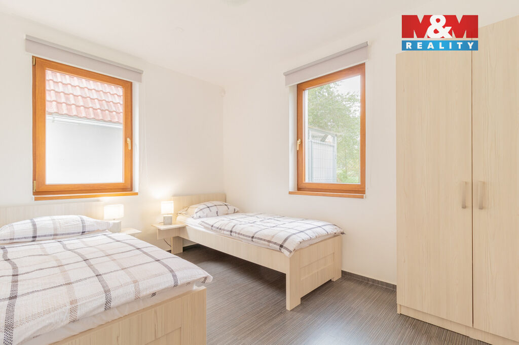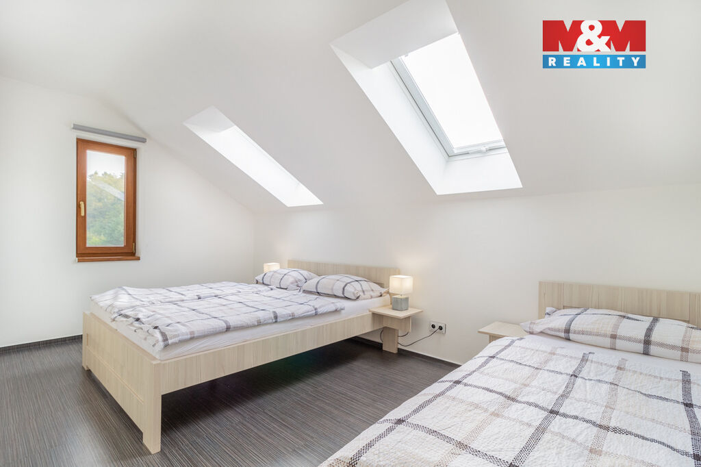 V 1. patře domu se nachází prostorný obývací pokoj, dvě ložnice, koupelna, kuchyně a samostatné WC. Ve 2. patře jsou k dispozici tři ložnice, kuchyně a WC.