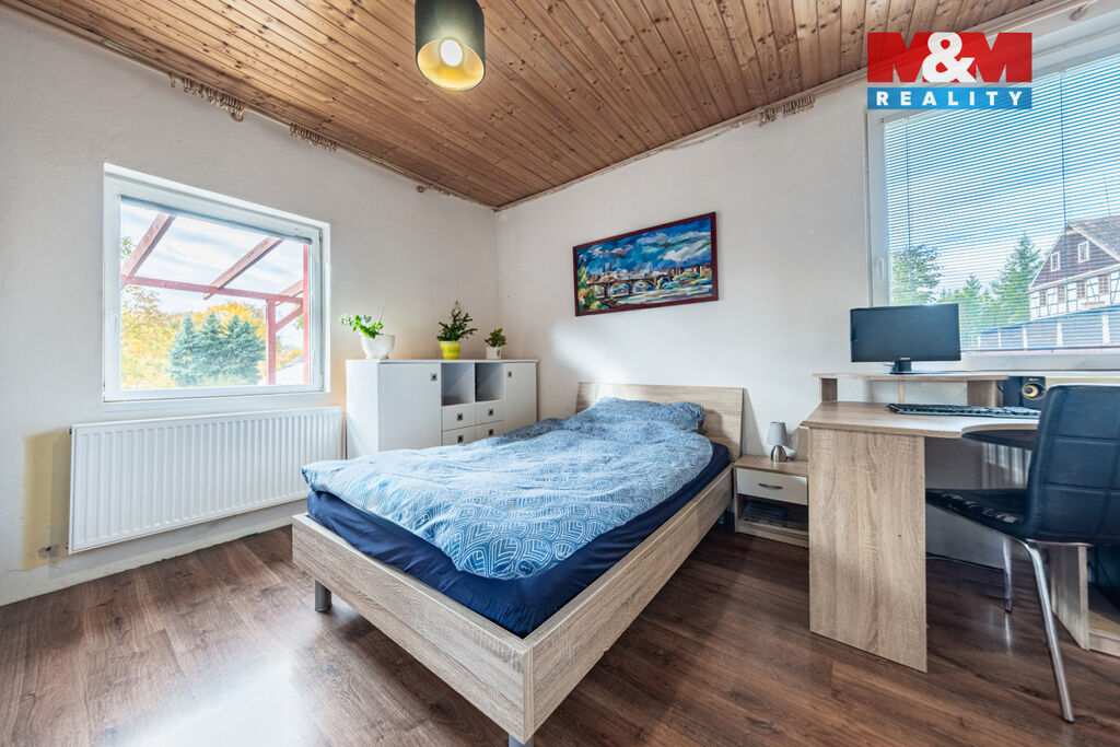 Nabízíme k prodeji rodinný dům v klidné části obce Krásná Lípa u Křimova v Krušných horách. Jednopodlažní dům o užitné ploše 124 m² disponuje šesti místnostmi a je ideální pro rodinné bydlení. Dominantou domu je otevřený prostor obývacího pokoje a kuchyně. Dům prošel v roce 2015 rekonstrukcí, včetně zateplení obálky domu a střechy. V chladných dnech oceníte krbová kamna s výměníkem, která zajišťují příjemné teplo. K domu náleží pozemek o rozloze 427 m². Na pozemku se nachází dřevník, skleník a rozestavěná terasa. Jedná se o skvělou nabídku pro ty, kteří hledají útulný domov v malebné lokalitě, nedaleko města Chomutov. Neváhejte nás kontaktovat pro více informací nebo prohlídku! S financováním můžeme pomoci.