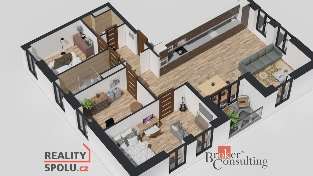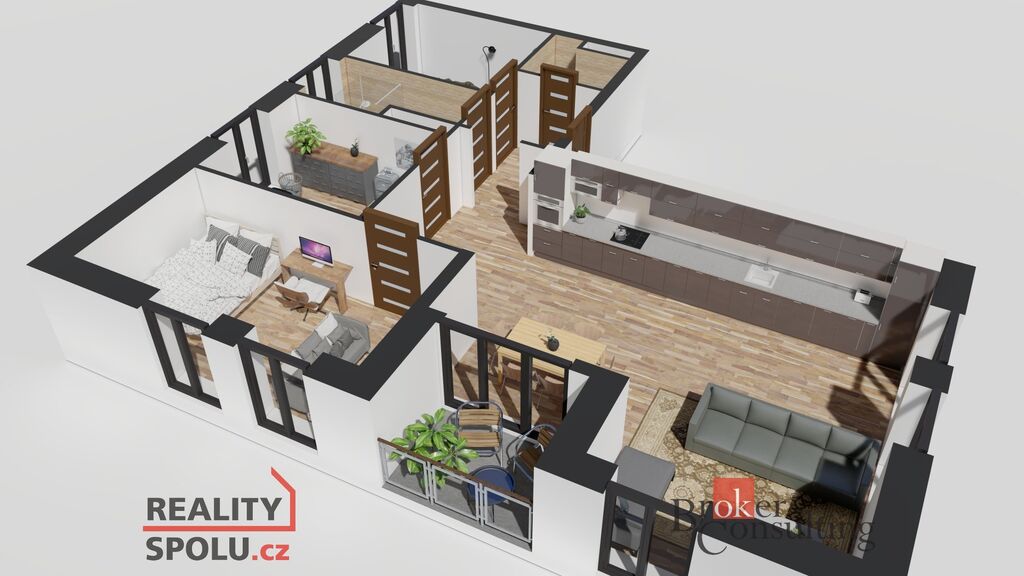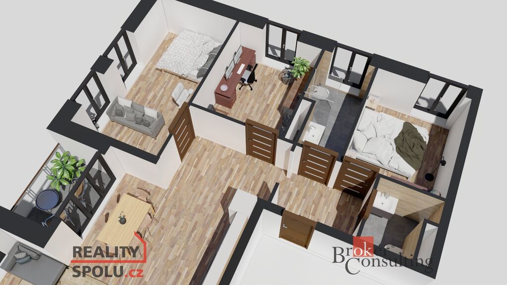 Nabízíme k prodej velice prostorný byt č. 4 o dispozici 4+kk o velikosti 92,31 m² ve 2. nadzemním podlaží projektu Rezidence Důl Michal.