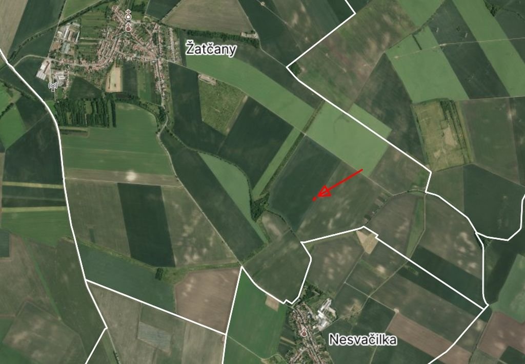 Jedná se o pozemek o výměře 61 m2. Jedná se o rovinatý pozemek, jehož hranice nejsou v terénu vyznačeny. Nachází se mimo ucelenou zástavbu obce, v lokalitě zemědělsky využívané půdy jižně od Žatčan ve směru na Nesvačilku. Původně byl součástí původní vozové cesty, která navazovala na přemostění Hranečnického potoka. V současnosti se pozemek nachází uprostřed zemědělsky obhospodařované půdy (mezi pozemky p.č. 3556, 3583 a 3582) a je užíván jako její součást.