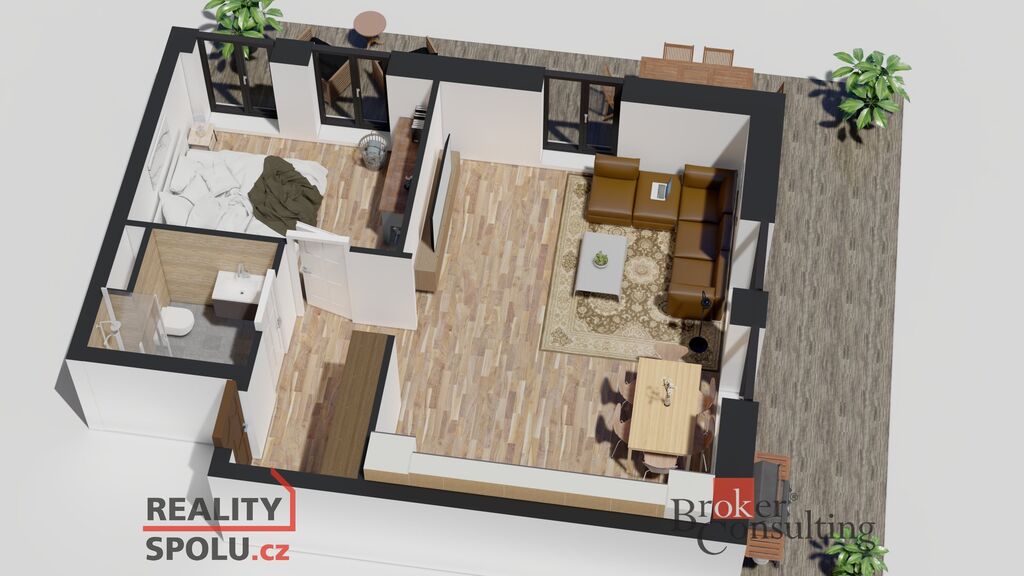 Byt disponuje prostornou terasou o velikosti 36,46 m² a přímým vstupem na vlastní zahradu, což ocení rodiny i milovníci soukromí.