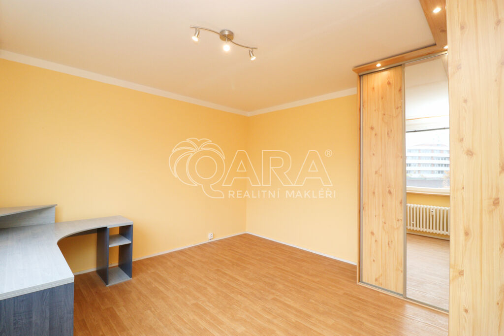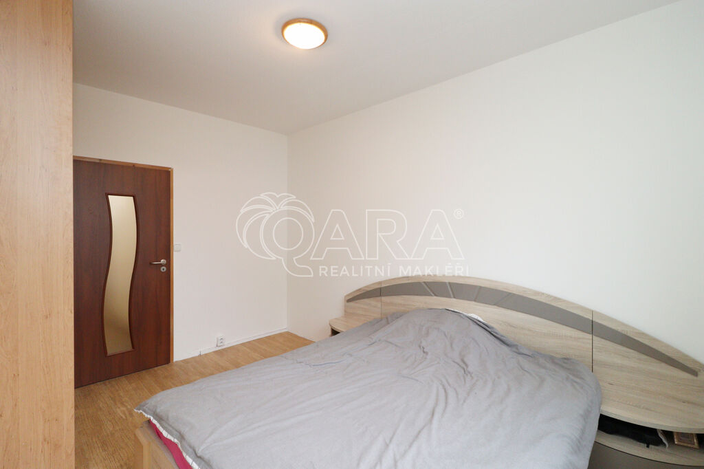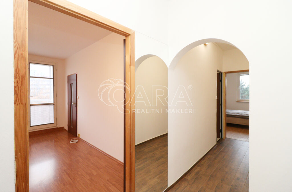 Koupelna a WC jsou odděleny dveřmi, přičemž v koupelně je umístěna pračka na prádlo s horním plněním. Dva pokoje disponují prostornými zabudovanými šatními skříněmi se zrcadly, což zajišťuje dostatek úložného prostoru. V obývacím pokoji o velikosti 19 m² se nachází lodžie o ploše 5 m², směřující na jihozápad, která nabízí příjemný výhled a dostatek světla, přičemž prosklení lodžie zajišťuje komfortní využití.