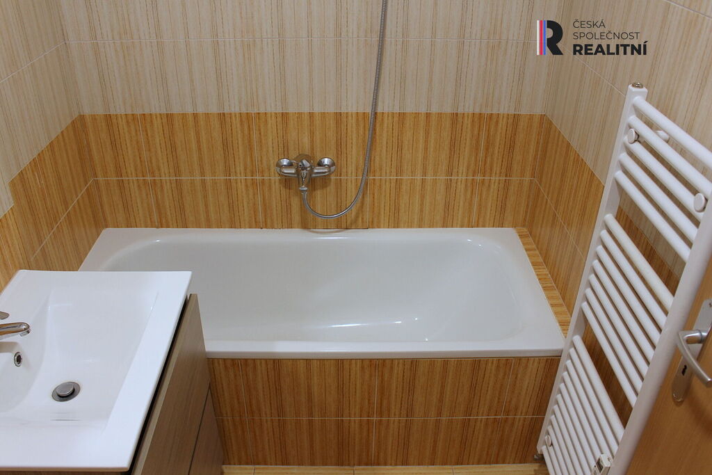 Byt situovaný na východ disponuje skvěle vyřešenou chodbou s úložnými prostory, oddělené WC a koupelnu s vanou.