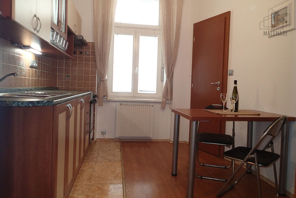 V exkluzivním zastoupení Vám nabízíme částečně zařízený byt 1+1 o výměře 37,6 m². Byt se nachází ve 2. NP s okny vedoucími do klidného vnitrobloku. Ve vstupní hale je velká vestavěná skříň. V kuchyni je k dispozici kuchyňská linka se spotřebiči. Z kuchyně se vchází do koupelny, kde je masážní panel ve sprchovém koutě a na samostatnou toaletu. Z kuchyně vedou dveře do obývacího pokoje. V pokoji je k dispozici nábytek, který byl vyroben na míru. V bytě jsou položeny plovoucí podlahy, v obývacím pokoji je navíc koberec. Před kuchyňskou linkou je dlažba. Poplatky jsou velmi nízké, elektřina se převede na nájemníka (cca 3 000 Kč měsíčně - topení, ohřev vody). Maximální počet nájemníků jsou dvě osoby. Byt se nachází v těsné blízkosti tramvajové zastávky Vosmíkových. Dopravní spojení do centra je výborné. Byt bude připraven k nastěhování od listopadu.