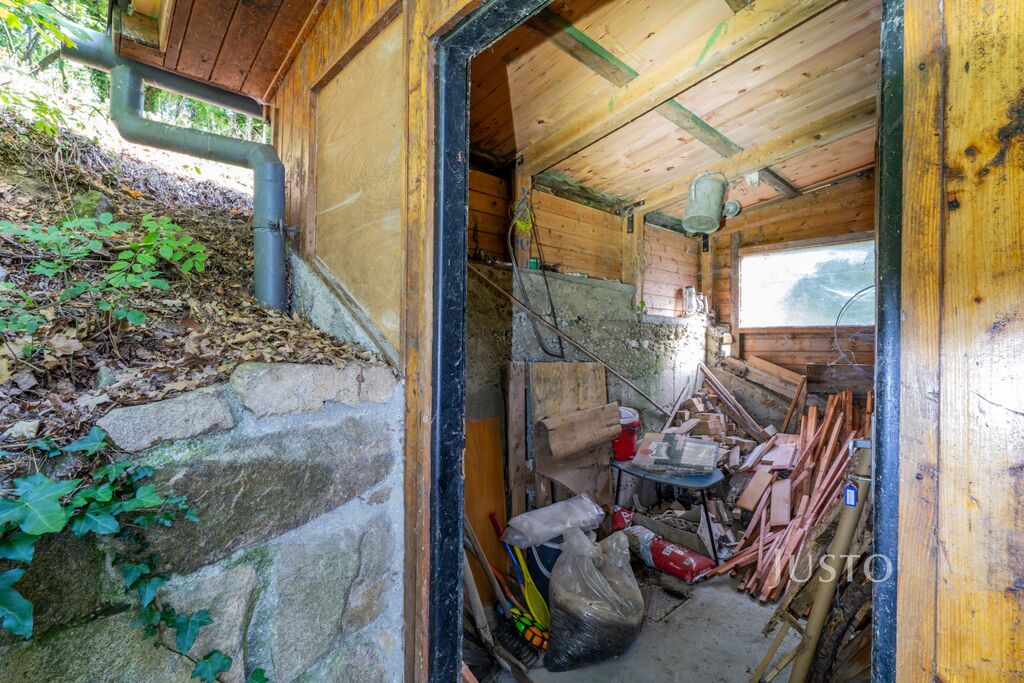 Podlahy jsou betonové, okna, dveře i stropy dřevěné, za chatou se nachází kůlna a suchý záchod umístěný v lese. Pod chatou jsou také úložné prostory vhodné na nářadí či dřevo.