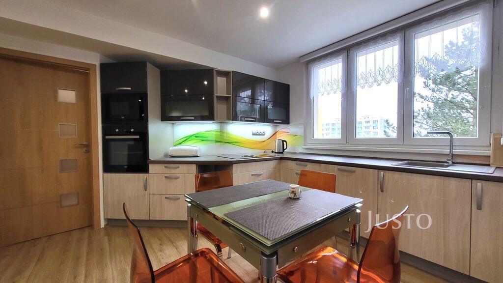 Byt se nachází ve 4.NP s prostorným výtahem, byl rekonstruován před cca pěti lety a prošel kompletní změnou dispozičního řešení.