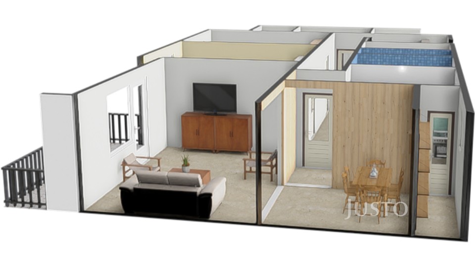 Dům je rozdělen na dvě bytové jednotky, v přízemí je byt s dispozicí 3+1 a v patře je byt o dispozici 2+1 s příslušenstvím. Vstup do domu je přes společné zádveří, přízemní byt nabízí dvě samostatné místnosti, kuchyni s praktickou spíží, jídelní kout a obývací pokoj s terasou. Koupelna je s vanou, toaleta je zvlášť. V podkroví je obytná kuchyně s místem pro jídelní stůl, prostorný obývací pokoj s terasou a samostatná ložnice. Koupelna je zde menší se sprchovou vaničkou a toaleta je zvlášť.