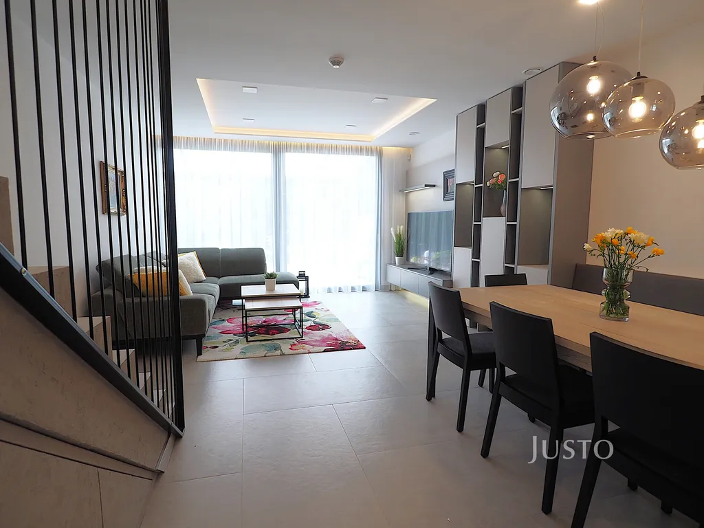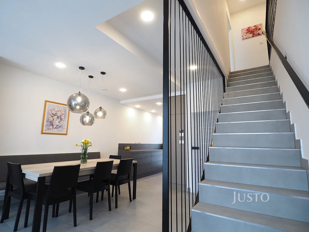 - Interiér domu je vybaven kvalitním nábytkem a prvky zhotovenými na míru, které podtrhují moderní vzhled a zajišťují maximální funkčnost