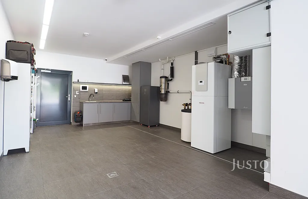 - Inteligentní podlahové topení a chlazení s ekvitermní regulací podle počasí (dům má vlastní meteostanici)