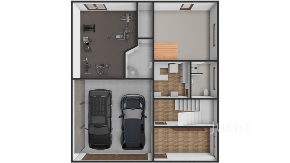 Podkroví skýtá vícero možností. Otevřená galerie (46,5 m²) nad obývacím pokojem může jako doposud sloužit k relaxaci nebo ji lze elegantně upravit na plnohodnotný obytný prostor. Na tento prostor navazuje pracovna (29,4 m²) a pokoj pro hosty (13,2 m²).
