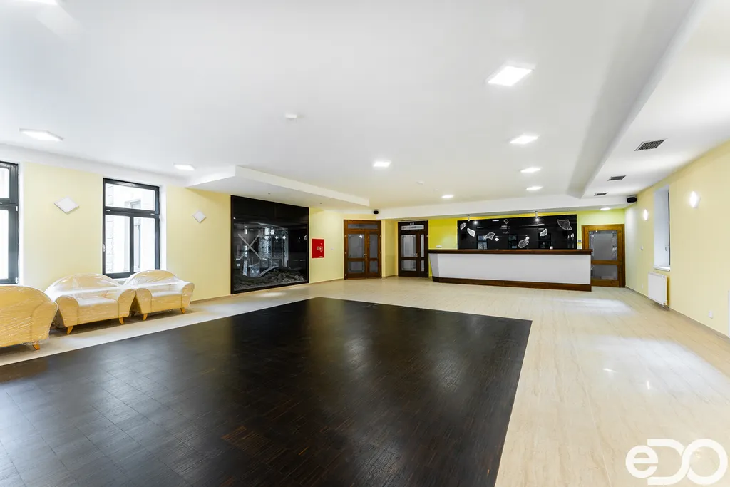 Eventové prostory: víceúčelový sál 164 m² se speciální taneční plochou, sál je propojen průhledem akváriem s restaurací