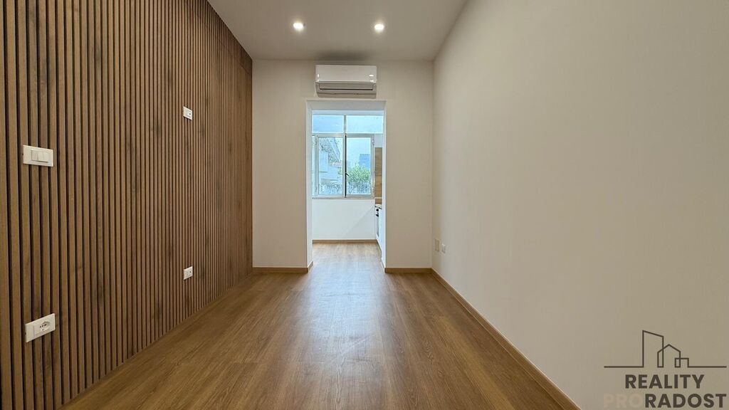 Dispozice bytu je promyšlená do posledního detailu. Zahrnuje útulnou ložnici, moderní koupelnu, světlý obývací pokoj a kuchyň propojenou s lodžií, která je celá zasklená otevíracími okny – vytváří tak jedinečný pocit, že stolujete přímo pod mořským nebem. Prostor působí otevřeně, vzdušně a mimořádně útulně.