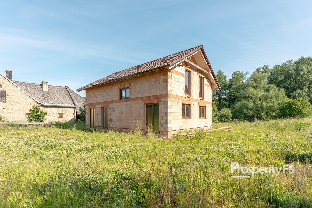 Stavba je realizována z kvalitních cihel Heluz Family 50 cm, které díky svým izolačním vlastnostem nevyžadují dodatečné zateplení. Osazena jsou plastová okna značky Sulko s trojsklem, střecha je z betonových tašek. K dispozici je také další stavební materiál – cca 3–5 palet cihel a komínový komplet.