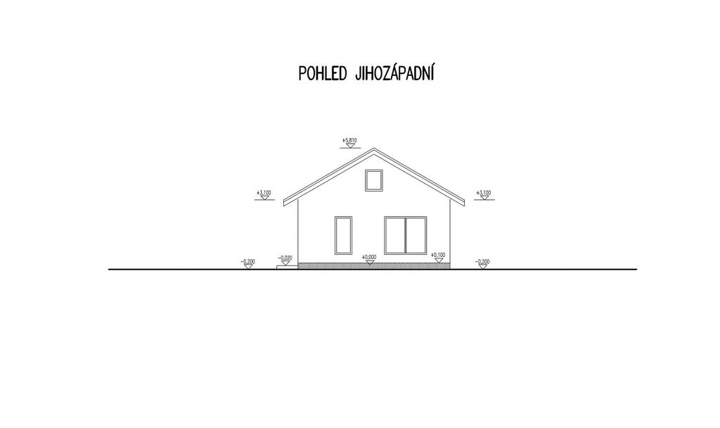 – Střecha: sedlová, dřevěná vazníková konstrukce, krytina plechová Satjam nebo betonová taška, klempířské prvky v barvě krytiny, difuzní fólie a kompletní podbití v barvě fasády