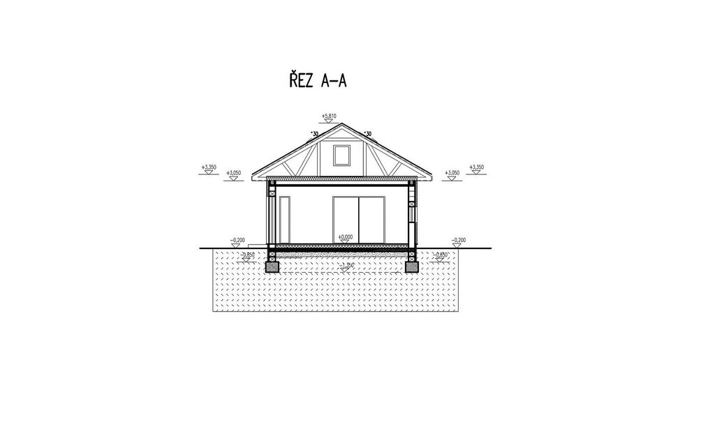 - Střecha: sedlová, dřevěná vazníková konstrukce, krytina plechová Satjam nebo betonová taška, klempířské prvky v barvě krytiny, difuzní fólie a kompletní podbití v barvě fasády