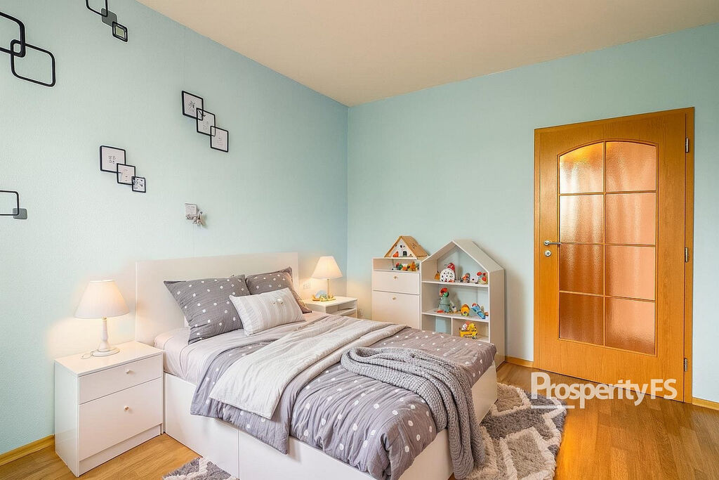 Byt má praktické uspořádání – kuchyň, obývací pokoj, ložnici, dětský pokoj, zděnou koupelnu a samostatné WC. Prostorná chodba poskytuje dostatek úložného prostoru a zasklená lodžie s výhledem na dětské hřiště dodává bytu příjemnou atmosféru i možnost venkovního posezení. Samozřejmostí je také sklepní kóje.