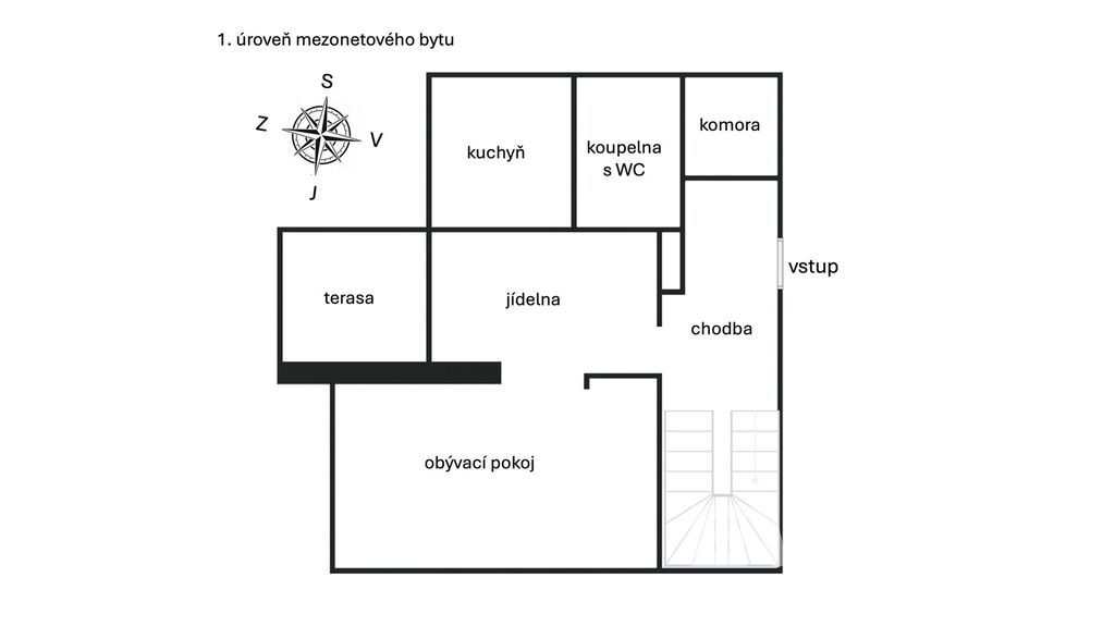 Byt je mezonetový s okny a terasami orientovanými jižním a západním směrem. V první úrovni se nachází samostatná kuchyně s přilehlou obývací místností s dostatečným prostorem pro umístění jídelny, ze které můžete vyjít na terasu – 5,6 m2 a dát si kávu či oběd i tady. Dále je zde umístěna koupelna s vanou a toaletou. Ve vstupní chodbě jsou dvě vestavěné skříně a komora, kterou lze využít i jako šatnu. Po dřevěném schodišti se dostane do podkroví, kde je umístěna další koupelna s vanou a toaletou. Dále se zde nachází čtyři obytné místnosti. Ze dvou ložnic máte výstup na samostatné terasy (5,8 m2 a 5,9 m2), které nabízí soukromí a nádherné výhledy do okolí. Největší podkrovní místnost 104 m2 plná střešních oken orientovaných jižním směrem nabízí různorodé využití, vytvoření ateliéru či jejího rozdělení na více místností. Součástí bytu jsou také dvě garážová stání v podzemní garáži domu, což je v centru města obrovskou výhodou.