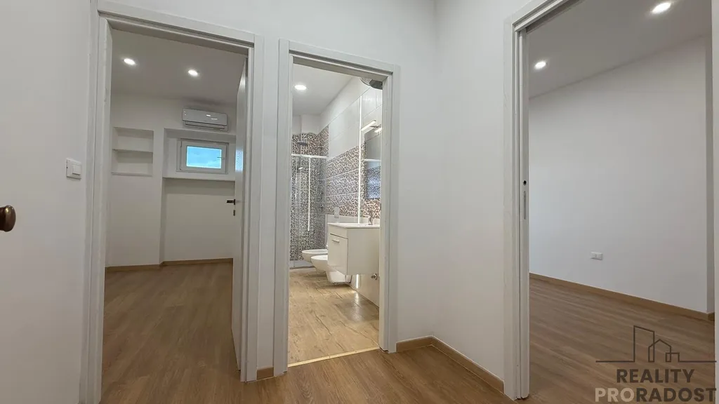 Tento byt prošel kompletní rekonstrukcí, která mu dodala svěžest, moderní charakter a elegantní atmosféru. Z lodžie je částečný výhled na moře, také na zelený parčík přímo před domem, za kterým se nachází písečná pláž.