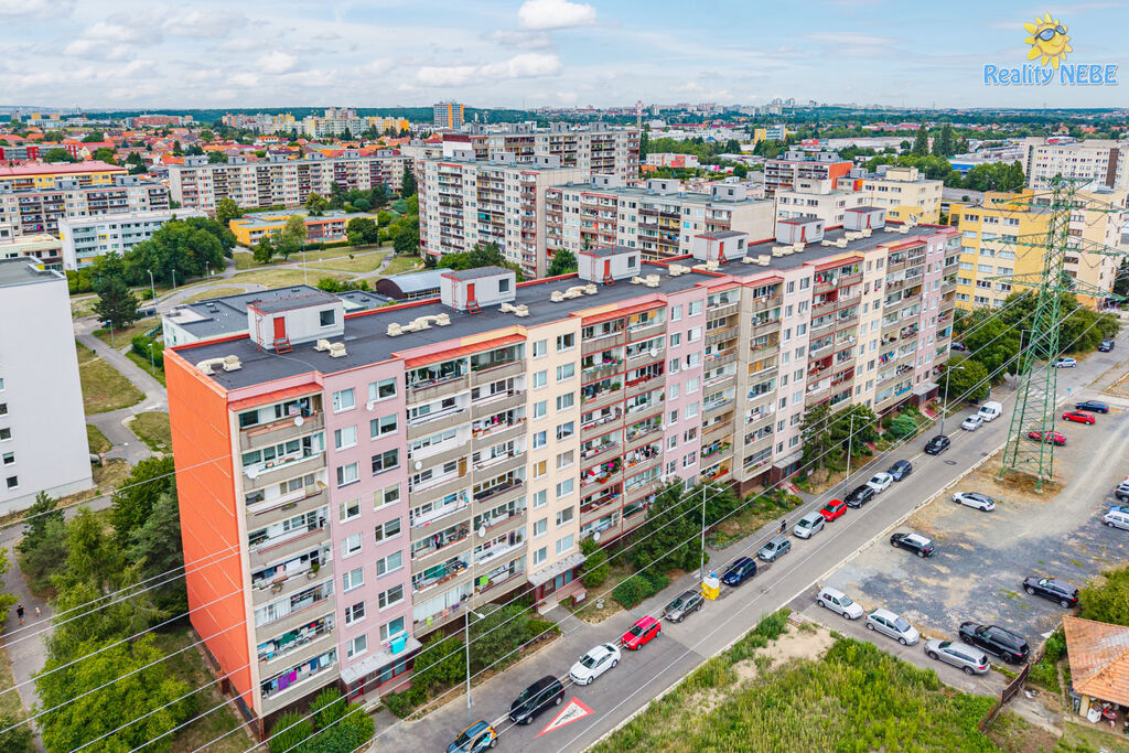 Skládá se ze samostatné ložnice, obývacího pokoje se kuchyňským koutem (linka s vestavnými spotřebiči - lednice s mrazákem, el. varná deska, trouba, digestoř, mikrovlnná trouba, možnost pračky a barovým pultem). Koupelna se sprchovým koutem a WC. Ve vstupní chodbě se nacházejí vestavné šatní skříně, byt má bezpečnostní dveře a náleží k němu sklepní kóje v suterénu domu.