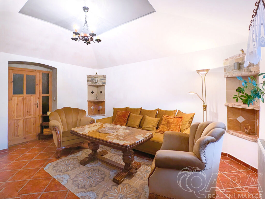 Pod domem je kamenný sklep o velikosti 15 m² s klenbovými stropy, suchý a bez známek vlhkosti.